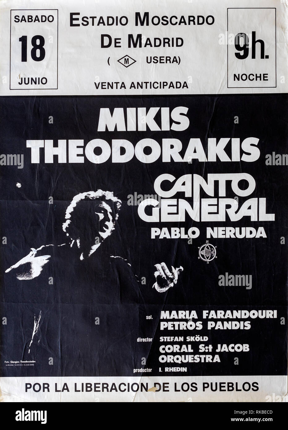 Mikis Theodorakis Canto General Madrid 1983 Musical Concert Poster Stock Photo Alamy